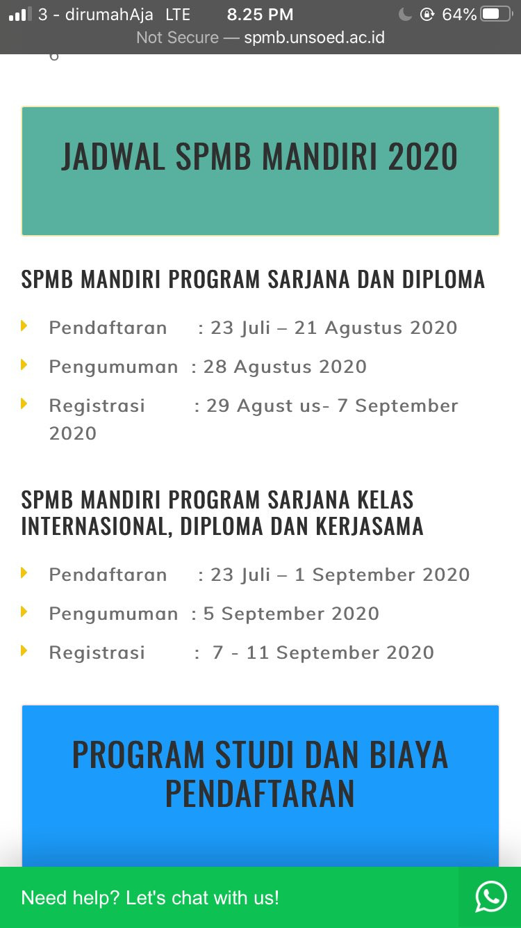 Revisi jadwal penerimaan mahasiswa baru jalur program diploma iii di lingkungan universitas negeri padang tahun akademik 2020 2021 terbaru. Sebelum mencoba mengikuti seleksi jalur mandiri, mungkin kamu bisa mengintip terlebih dahulu mengenai biaya mandiri um 2021. Dilansir dari situs resmi universitas padjadjaran (unpad), hasil tes masuk online akan diumumkan pada jumat, 2 juli 2021 mendatang. Dikutip dari situs resminya, biaya studi sekarang sesuai dengan peraturan rektor universitas jenderal soedirman nomor 20 tahun 2020 tentang biaya pendidikan bagi mahasiswa universitas jenderal soedirman, yang menggantikan keputusan rektor unsoed nomor kept. Masih ada jalur mandiri yang bisa kamu lalui.